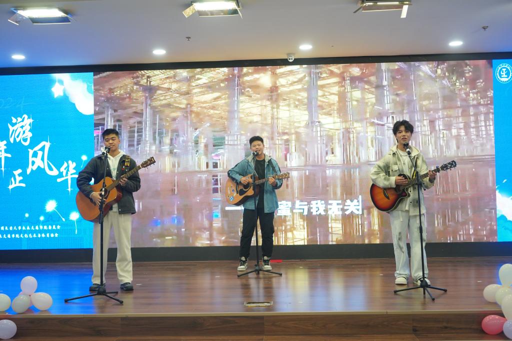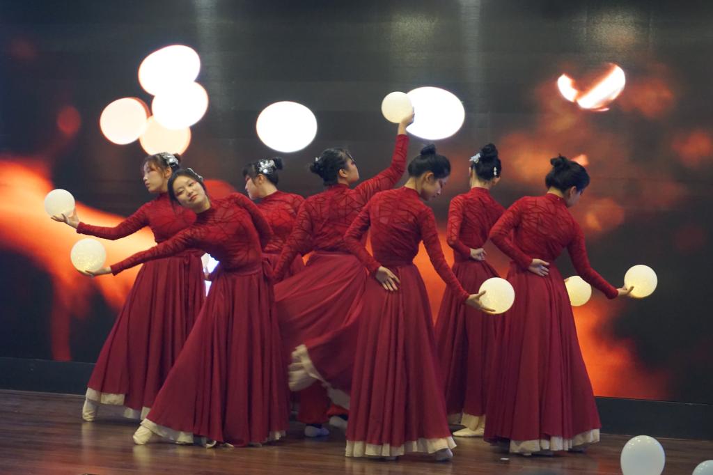 在晚会的后半程,兼职辅导员戴汐涓和2024级本科生徐子婷共同带来的节目《生活倒影》深深打动了在场观众。戴汐涓用优美的歌声将生活的点滴化作动人的旋律,而徐子婷则以优雅的舞姿将歌曲中的情感完美诠释,二者相得益彰,共同演绎了一段关于生活的美好篇章。