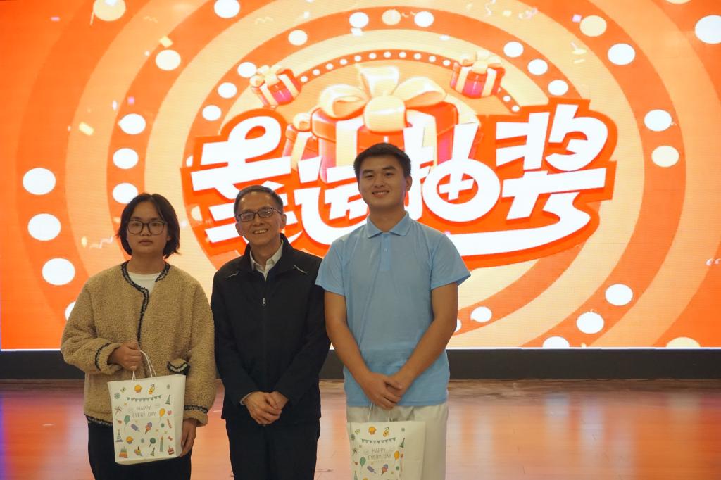 晚会的中场环节同样充满欢声笑语。游戏“你画我猜”中,同学们的创意表演引人阵阵发笑;“听歌识曲”环节中,同学们踊跃举手参与,现场气氛热烈非凡。而最令人期待的抽奖环节更是将晚会推向了又一个高潮,幸运观众的喜悦感染了全场,院领导、新生辅导员为幸运观众颁奖并合影留念,为他们留下了难忘的回忆。