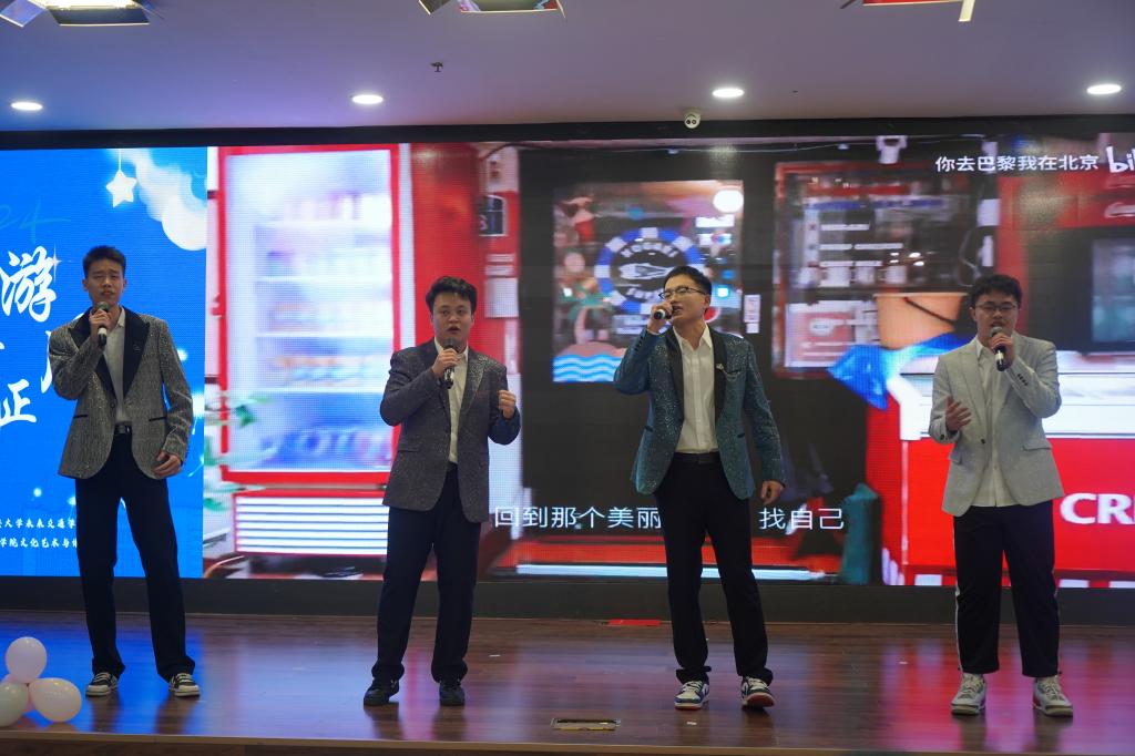 歌曲联唱环节精彩纷呈。《鼓楼》以其轻快的节奏和融合现代流行元素与传统文化的韵味赢得了观众的阵阵掌声;《是你》那深情而温暖的旋律让每一位观众都感受到了情感的共鸣;《找自己》则以动感十足的表演将歌曲中对自我探索的热情和对生活的热爱展现的淋漓尽致,将晚会氛围推向了另一个高潮。