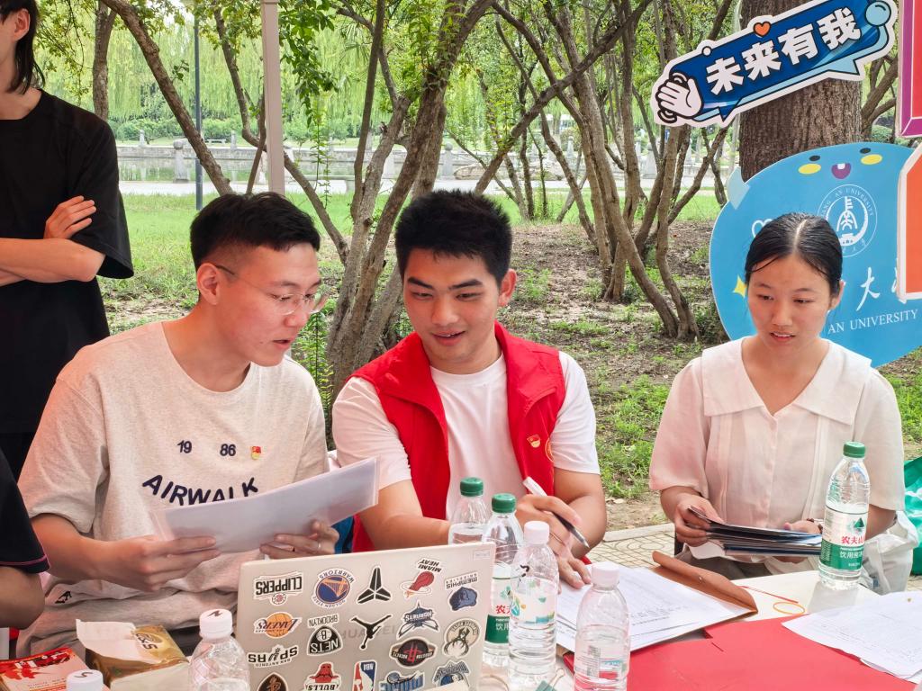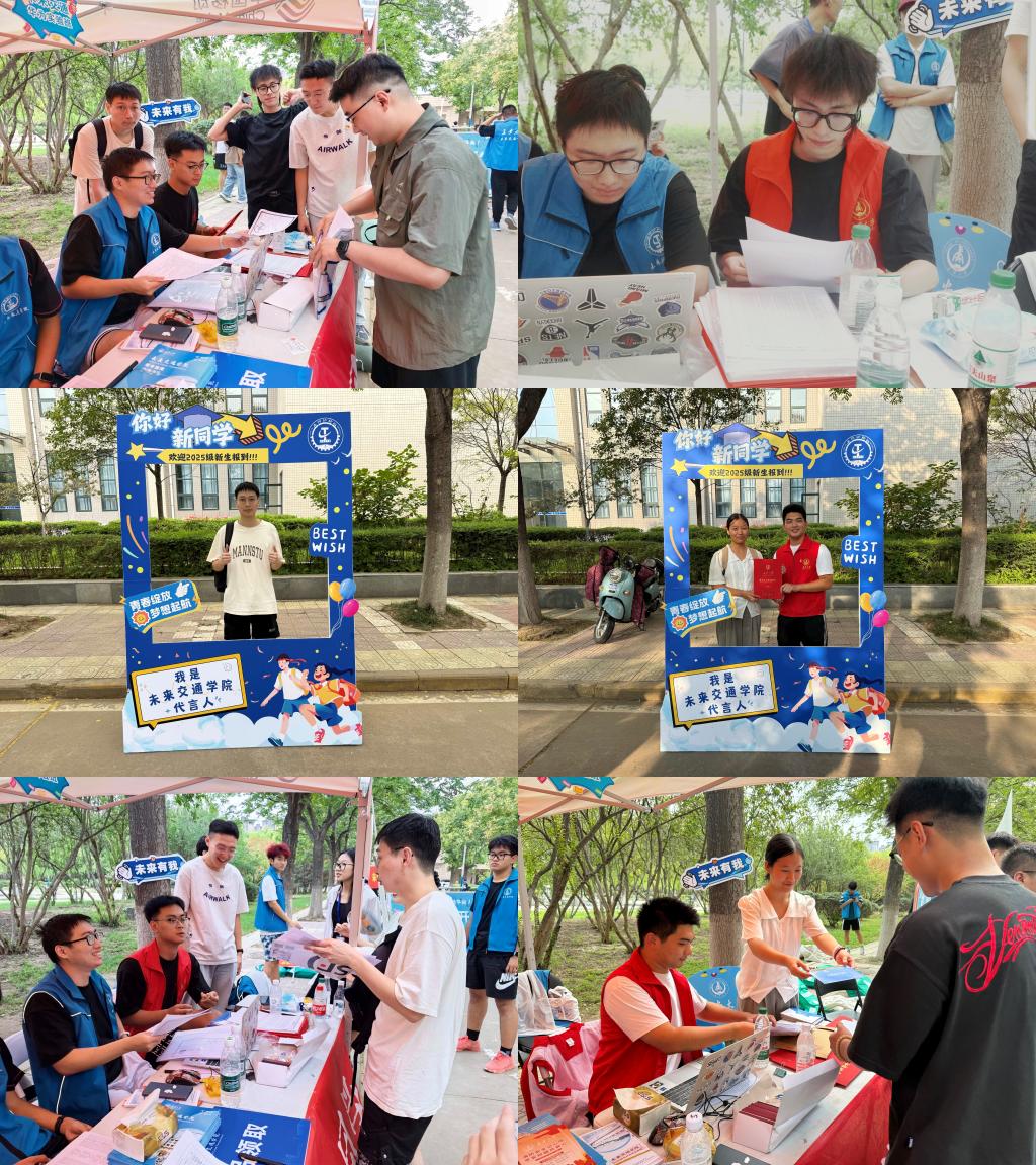 校院两级领导、班主任、辅导员老师们来到迎新服务点