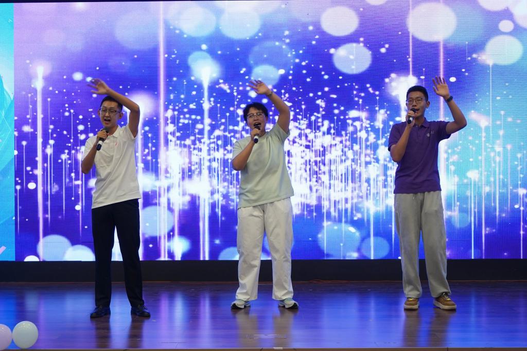 伴随着《未来我来》的激昂旋律,国旗与院旗整齐舞动,全体演职人员与嘉宾登台谢幕,为这场别开生面的迎新晚会画上圆满句号。