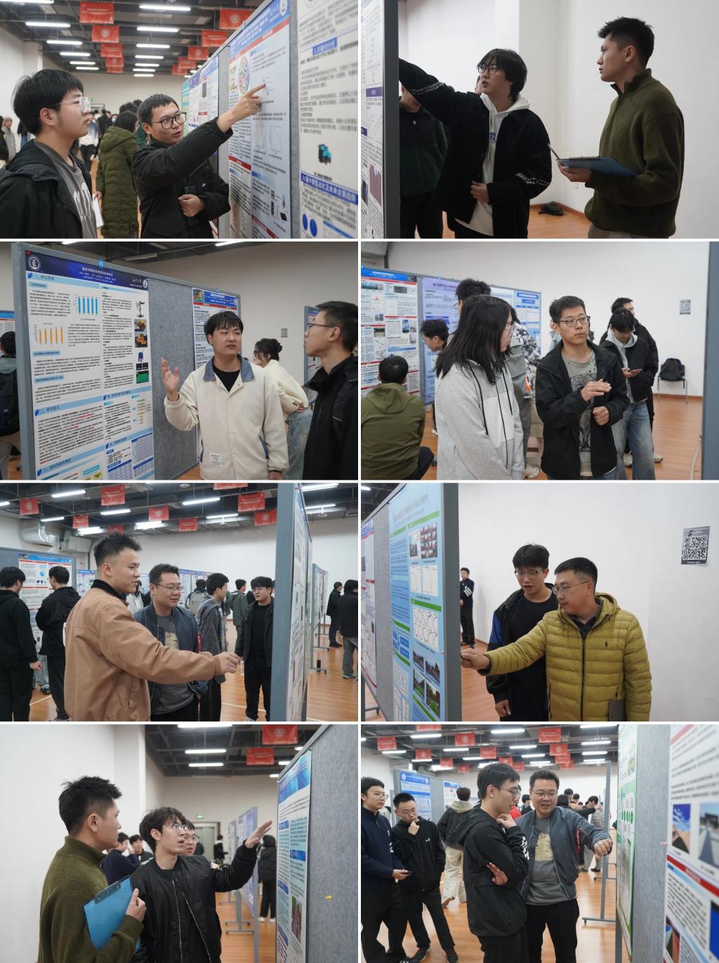 其他年级同学分批到场观展,担任大众评审,从海报内容的创新性、完整性、设计美观度以及现场解说表现等多个维度进行线上评分。观展过程中,同学们积极与参展学长学姐交流探讨,既学习了海报制作与学术展示的技巧,也拓宽了对不同科研方向的认知,现场互动频繁,气氛热烈。