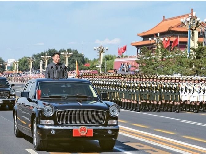 2015年9月3日,纪念中国人民抗日战争暨世界反法西斯战争胜利70周年大会在北京隆重举行。这是中共中央总书记、国家主席、中央军委主席习近平检阅受阅部队。