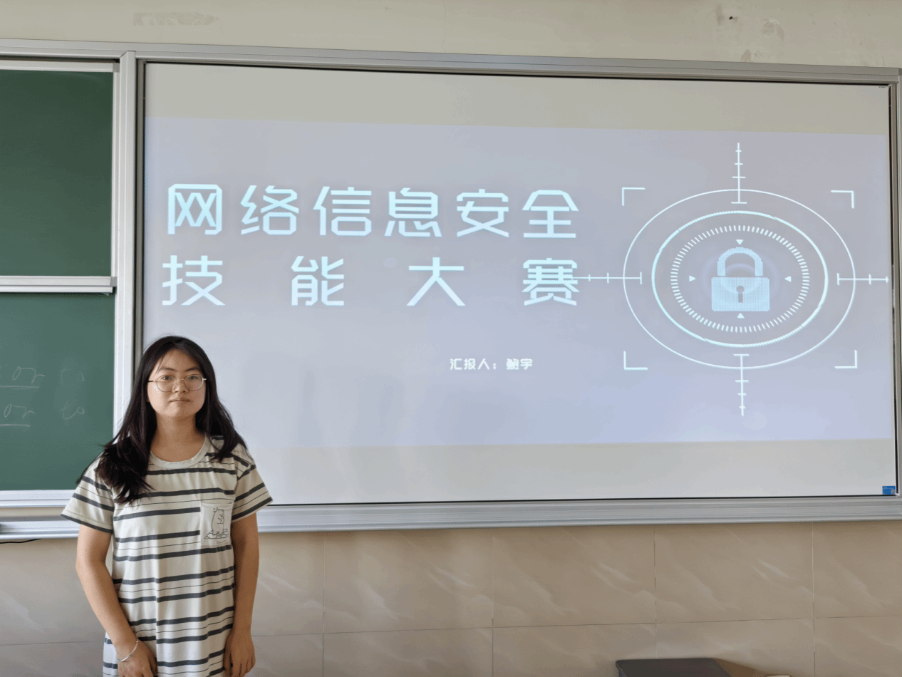 学生进行了“山东省大学生网络安全技能大赛”的线下赛事介绍,活动由科创部部长鲍宇主讲。