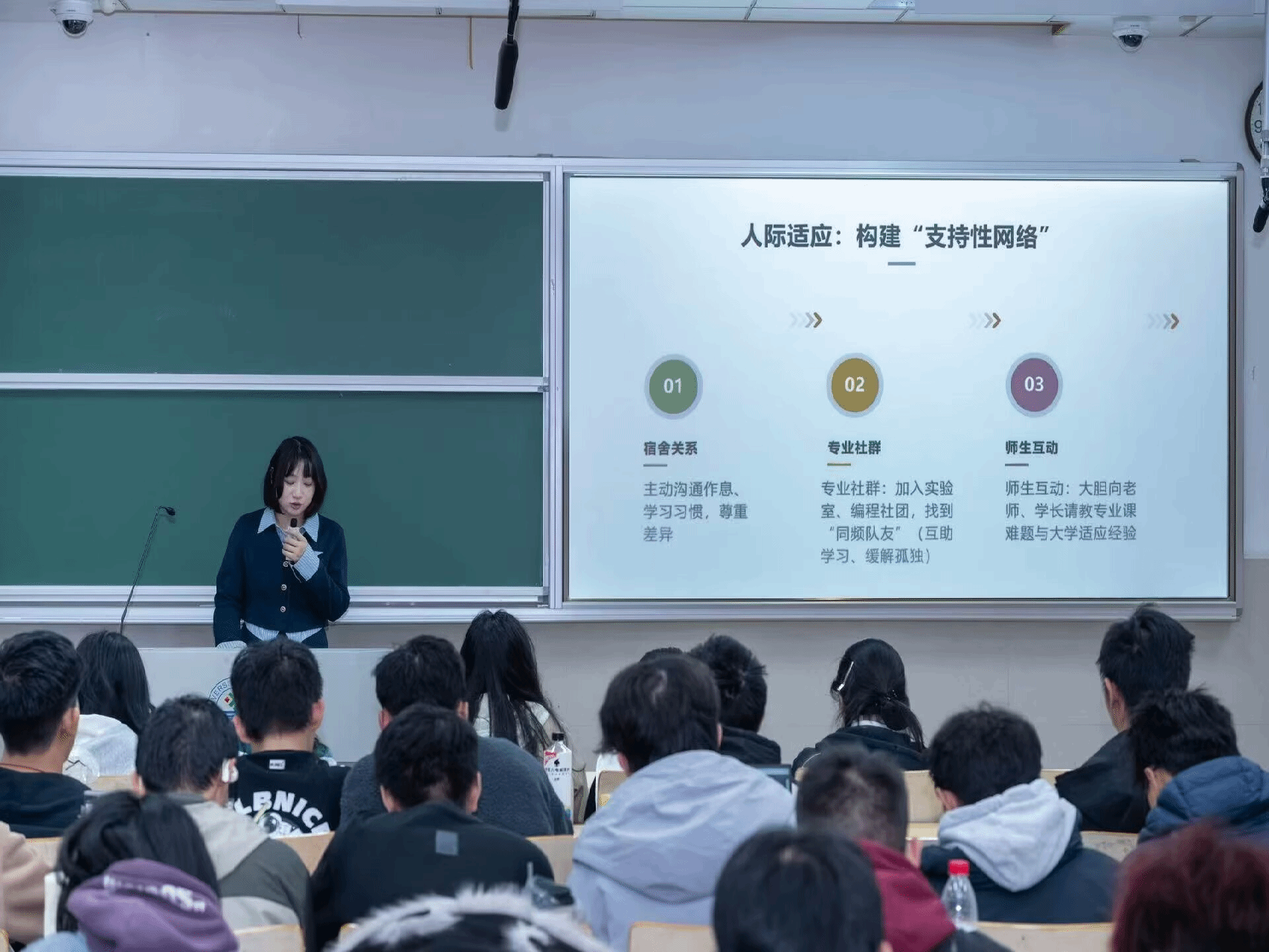 宣讲主题兼具专业性与人文关怀,引导新生向内觉察、向外接纳,在独立与协作中成长;通过情景模拟,将专业硬实力与情绪管理、人际沟通等软实力相结合,帮助新生在角色转变中建立心理韧性。与此同时,朋辈宣讲员结合自身经历与专业知识,引导新生科学认识常见心理现象,掌握实用的心理调适方法,提升应对压力与挫折的能力。活动结束后,同学们纷纷表示,此次宣讲内容实用、贴近需求,有效解答了初入校园的心理困惑。