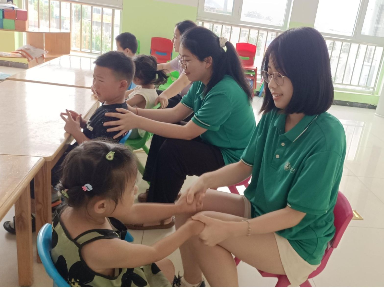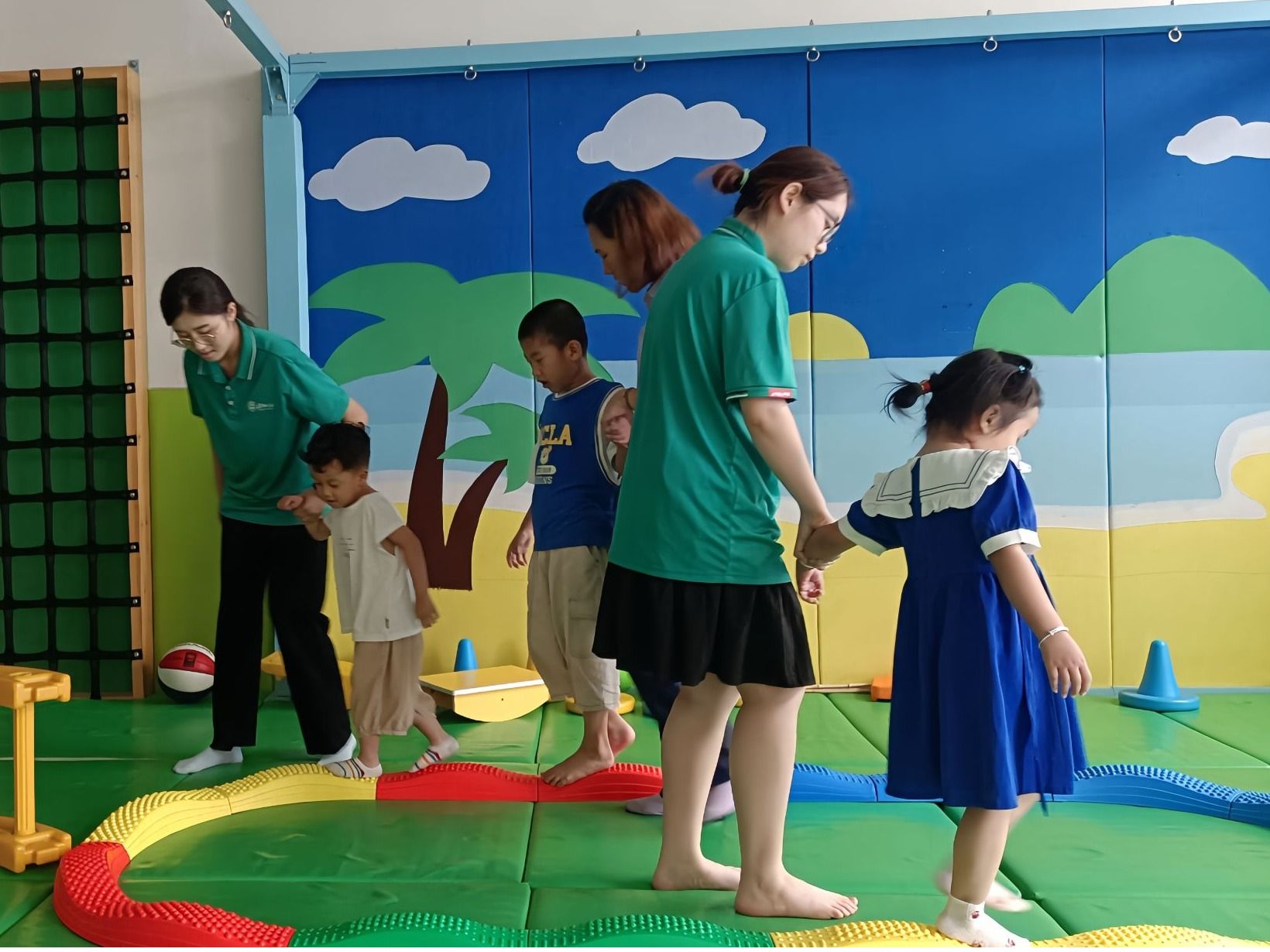 实践活动期间,团队成员同机构中心的老师一起走进班级,与多名特殊儿童进行面对面接触与教导,将专业知识与青春热忱,化作特殊儿童逐光路上的羽翼。教导内容多种多样,如协助老师对特殊儿童进行识字训练、看图识人、朗读汉字等等,训练认知能力与语言能力;又或是辅助孩子们进行攀爬、走平衡木、跨栏杆、随音乐进行舞蹈等运动,增强身体机能与运动能力的发展,同时进一步增强孩子们的注意力,促进情绪与社交发展。此外为进一步与孩子们进行交流与沟通,团队成员还与机构老师、特殊儿童进行了水枪大战,与老师、孩子们一起在一声声欢声笑语中增进感情,让最珍贵的共鸣产生在童趣碰撞的瞬间。活动结束后,机构特地为团队成员举办了欢送会,成为双向滋养的“成长课堂”:成员们用真诚的语言表达出自己在这些天的收获,并对机构的老师与孩子送上自己真挚的祝福;同时,机构也表达出对于开元娱乐城