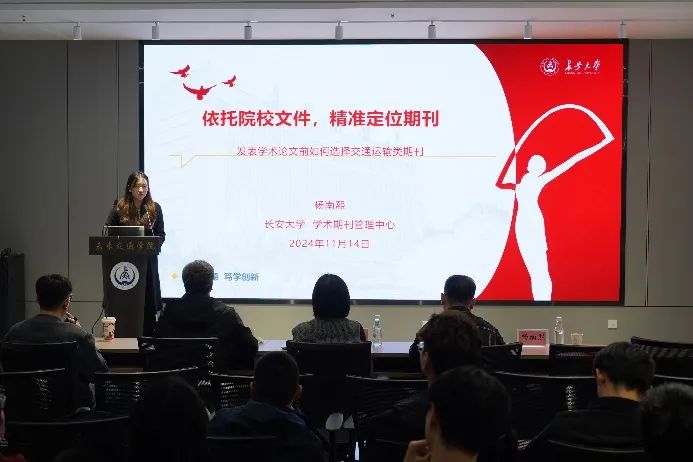会上,杨南熙首先向同学们介绍了自己的个人情况和工作职责。她表示,作为思政班主任,将在理想信念教育、生涯规划与就业指导、社会实践及困难帮扶等多个领域,为同学们提供全面的指导和帮助。随后,杨南熙从自身岗位出发,向同学们介绍了期刊中心的基本情况,并对《长安大学学术期刊目录》进行了细致解读,以帮助学生明晰期刊分类和遴选体系,为今后的学术研究打下坚实基础。最后,她表示将全心全意为学生成长保驾护航,在思想、生活、学习等方面提供切实有效的帮助,陪伴学生共同进步。