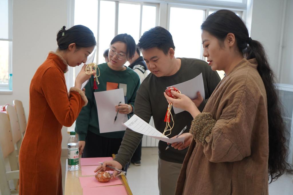 培训结束后进入现场制作环节。各小组自主选择香囊制作材料、布料、香料以及针线。小组成员们围坐一起,精心商讨制作方案。制作期间,大家相互交流香囊的传统样式与寓意,现场欢声笑语不断。随着制作过程推进,有的小组率先完成香料的调配,混合的药香与花香浓郁而和谐,让人嗅之舒心,小组成员小心翼翼地将香料装入已缝制好的香囊袋,配合心灵手巧的组员做好收尾打结,拿起彩绳,手指灵动地穿梭,巧妙地系紧袋口,一个漂亮的如意结呈现。有的小组则挑选出几缕色泽鲜艳、质地柔软的穗子,仔细比对长度后,将其缝在香囊底部,那穗子随着微风轻轻晃动,为香囊增添了几分灵动与俏皮。