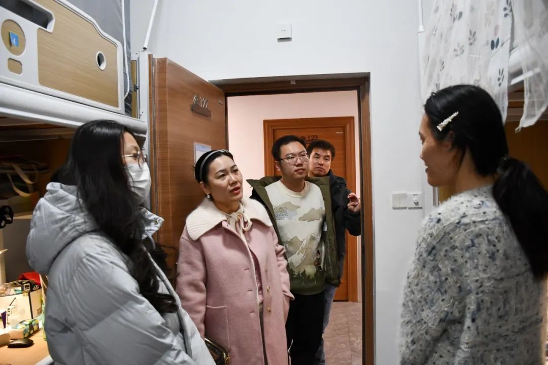 副院长汤颖颖和各年级辅导员深入学生宿舍,详细了解学生近期学习状况,特别关注学生的未来学习规划,为学生答疑解惑并提供建设性指导。在宿舍卫生方面,老师们督促学生保持良好的卫生习惯,打造整洁舒适的居住环境。针对宿舍安全,着重提醒学生全面开展安全隐患排查工作,对电器设备、电线电路等进行细致检查,做到防患于未然,通过强化安全教育,持续提升学生的宿舍安全意识,为学生的学习生活筑牢安全防线。