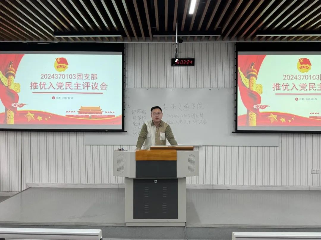 各班团支部开展2024-2025学年春季学期推优入党民主评议工作,各团支部全体成员到场参会,院学生事务部主任刘志兴、院团委书记曾晓阳及各年级辅导员全程指导监督。