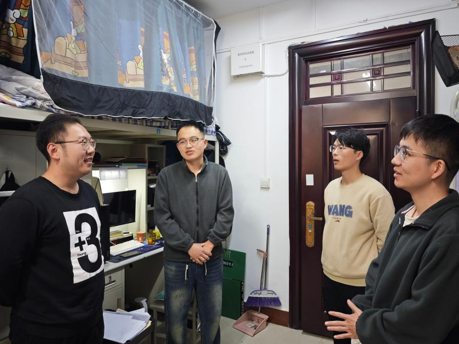 学生事务部主任、研究生辅导员刘志兴组织学生学习《长安大学学生住宿须知》,开展宿舍安全卫生教育,并组织学生对宿舍进行全面清洁。之后,刘志兴走访南北校区学生宿舍,与学生面对面交流,送去温暖和关怀。他询问同学们的科研进展、生活需求和心理健康状况,针对学业压力、职业规划等共性问题给予建议,并重点检查了宿舍用电安全与卫生环境,排查宿舍安全隐患,强调了宿舍作为集体生活场所,宿舍成员应保障宿舍良好的卫生环境,保持自身健康的生活习惯。