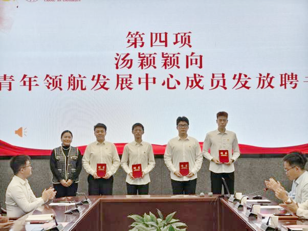 汤颖颖向青年领航发展中心第一届成员代表颁发聘书并讲话。她向青年领航发展中心的成立表示祝贺,指出中心一是要协助党支部做好学生党员的发展、培养和转正等相关工作,确保党员发展的规范性;二是要承担开展开元娱乐城