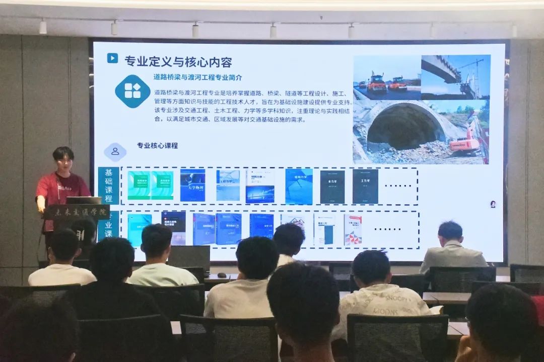 张宇康结合道路桥梁与渡河工程专业,从培养体系、核心课程、行业前景及职业路径等方面进行深入解读。他指出,当前国内道路桥梁面临翻新、改造的巨大需求,而“一带一路”倡议更提供了拓展海外市场的机遇,建议同学们要注重专业核心课程的学习,夯实理论基础,注重力学与理科思维的培养,努力成为具备道路、桥梁、隧道设计、施工及管理综合能力的人才。