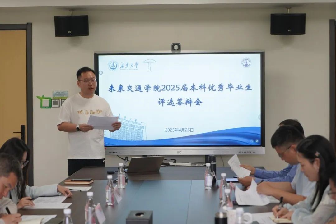 副院长汤颖颖、杨旭,教学与国际交流事务部主任马征,学生事务部主任刘志兴,团委书记曾晓阳,专任教师戴涛、陈文强,2025届本科毕业生辅导员范荣欣和学生代表萧梓钧担任评委,会议由刘志兴主持。