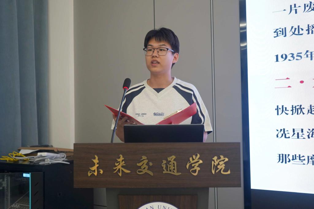 王鹤松以爱国歌曲串联历史,分享了从抗日救亡时期聂耳、冼星海作品唤醒人民群众斗志到《黄河大合唱》首演的故事,展现音乐的精神力量。他结合2024年中国经济以及创新领域的亮眼数据,诠释当代青年担当与国家发展成就。王鹤松引用习近平总书记讲话,号召青年“有理想、敢担当、能吃苦、肯奋斗”,为民族复兴贡献力量,激发青年爱国情怀。