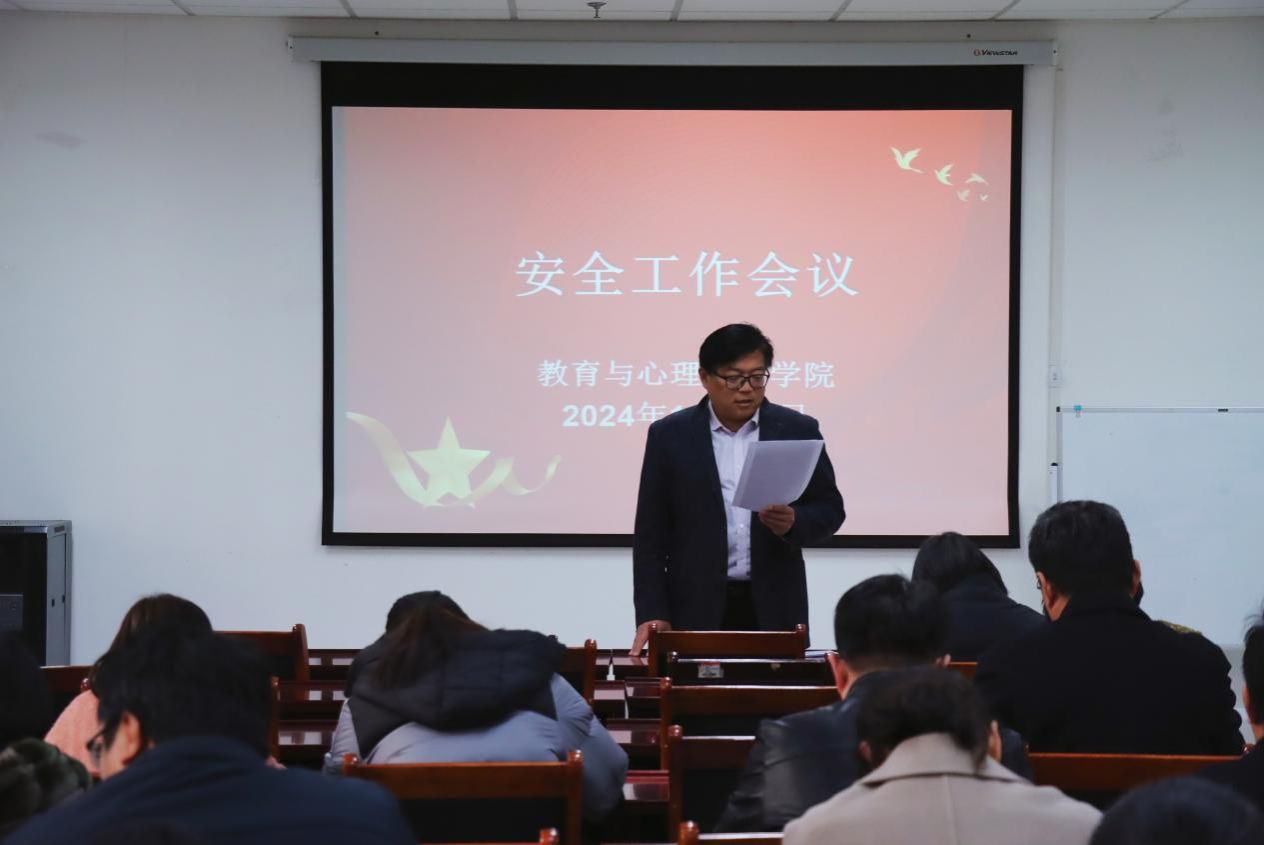 安全工作会议精神,要始终把师生的生命安全放在首位,弘扬生命至上、安全第一的思想,要全面做好安全隐患排查,强化师生风险意识,全面提升风险防范能力,共同维护好校内安全稳定。