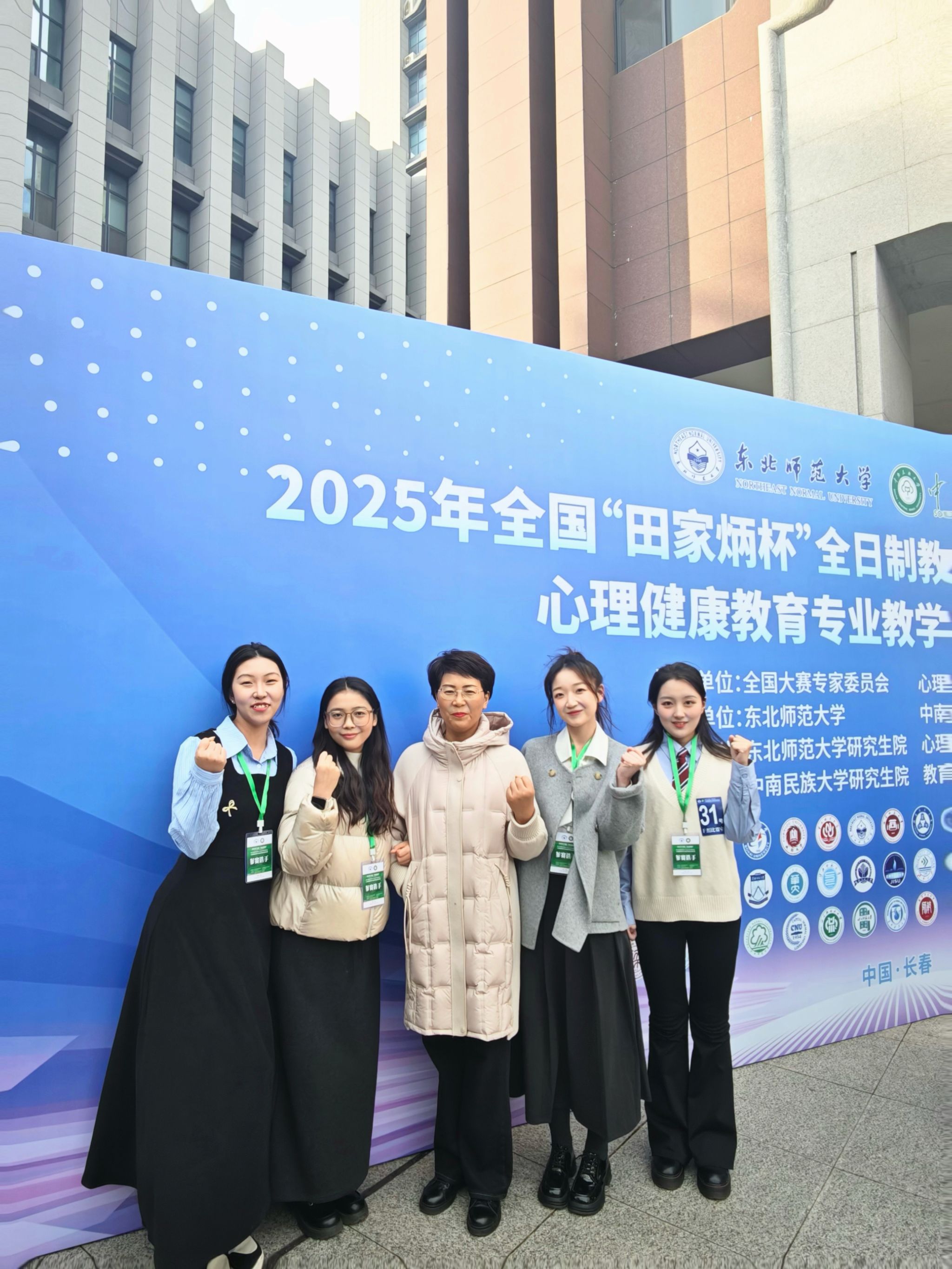 近日,在东北师范大学举行的2025年全国“田家炳杯”全日制教育硕士专业学位研究生“心理健康教育”专业教学技能大赛落下帷幕,魏淑华教授指导的研究生马清泽和董及美副教授指导的研究生赵永鑫获得全国二等奖,乔福强副教授指导的研究生车炳莹和郭迎澳获得全国三等奖,魏淑华老师和董及美老师获得“优秀指导教师奖”。