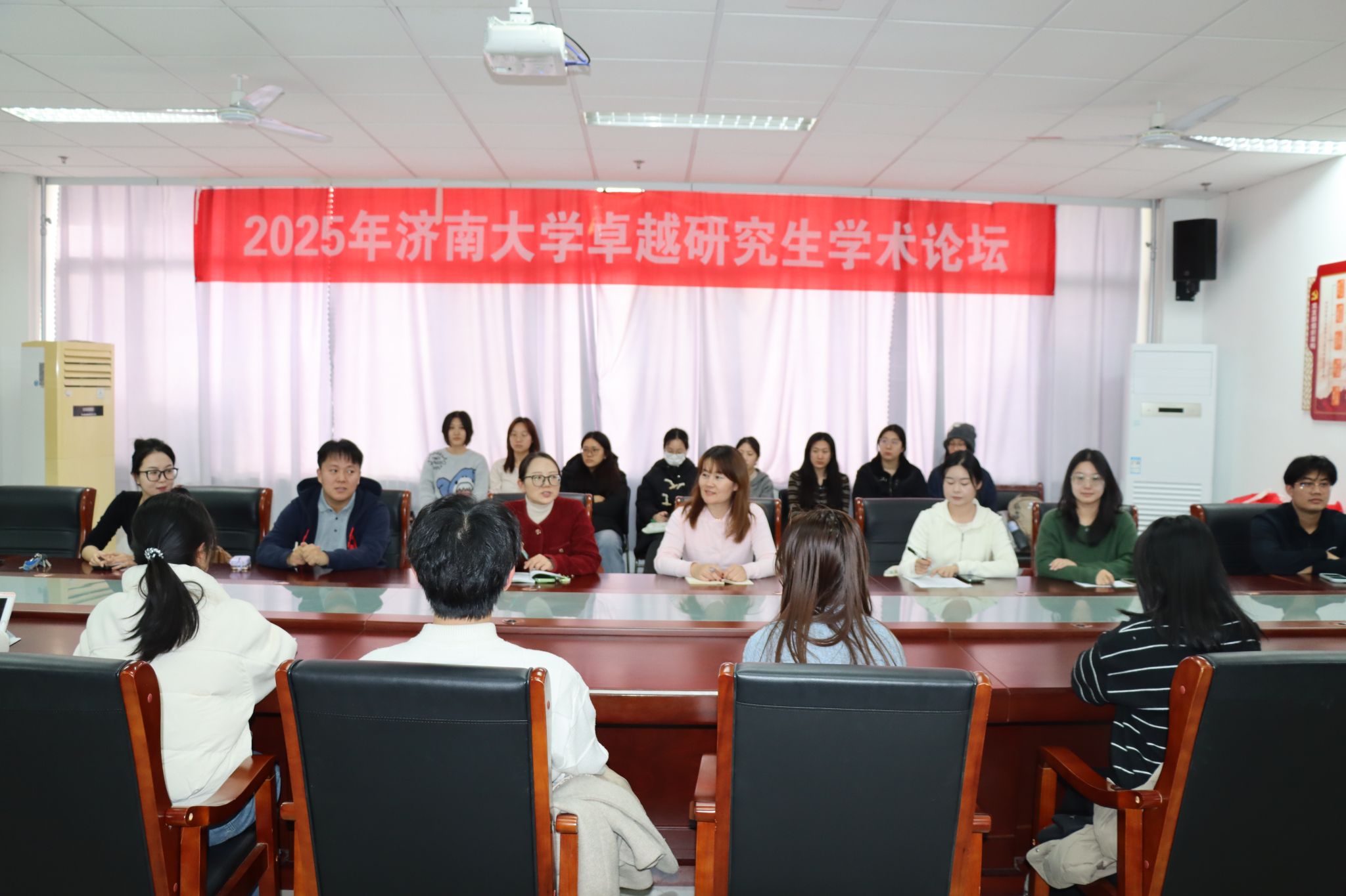 学生办公室主任卓华丽,研究生辅导员买地阿依·阿布都古力出席此次论坛,2025级研究生参会,论坛由李凝睿主持。