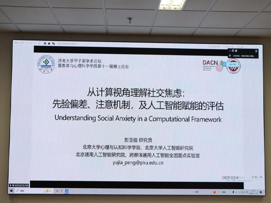 彭玉佳教授作《从计算视角理解社交焦虑:社会认知过程中的认知偏差及人工智能赋能的评估》报告,跨界融合计算精神病学与人工智能技术,为社交焦虑的评估与干预提供了创新方案。各场报告均设置互动环节,师生们踊跃提问,专家耐心答疑,现场学术氛围浓厚。