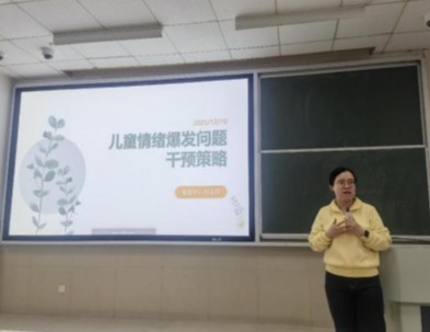 的转型发展(设孤独症班),并围绕情绪是什么、情绪问题的处理、行为的功能及行为问题干预等主题进行介绍,通过身边真实案例,让特殊教育专业学生认识孤独症儿童问题行为的解决与干预策略,同时体验特殊教育教师的艰辛与坚守,引导他们做事情要尽职尽责。