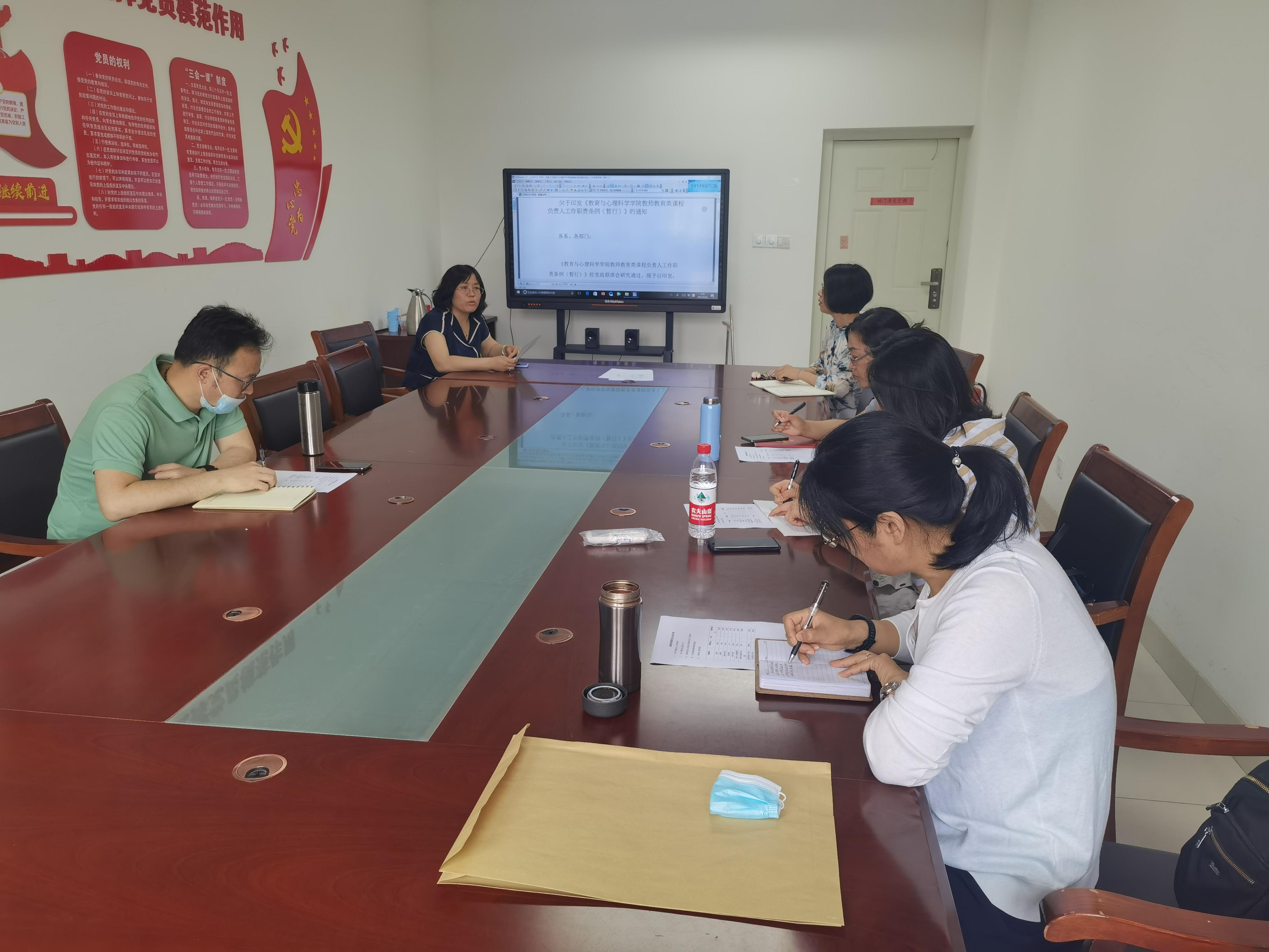教师教育课程建设的重要性及未来可以探讨发展的方向、措施。李开云带领课程负责人一起学习《课程负责人工作职责条例》师范类专业课程的《课程目标达成度》文件、以及如何根据师范专业认证标准修订课程教学大纲、制定教案。会议还安排课程负责人专门学习《高等开元娱乐城