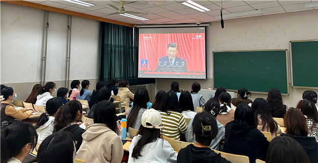 师生通过集中和分散相结合的方式收听收看党的二十大开幕会盛况。