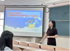 实施心理健康教育的主要途径。她从团体动力学的视角,讲解了心理健康教育课的“暖身-转换-工作-结束”四阶段结构,通过真实的课堂案例,引发同学们对于课堂团体动力不足原因的思考,并引导同学们将团体动力理论的应用扩展到了班级建设、团队发展和组织管理等领域。在心理健康教育课的设计部分,许老师将设计指导思想凝练为——从学生中来,到学生中去,认为心理课要始终寻找和融入学生的生活,心理教师在教学中最重要的就是要做到“眼里有人”。
