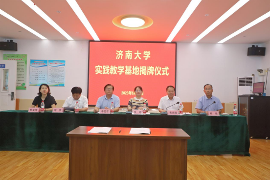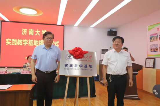 实践教学基地签约暨揭牌仪式,枣庄市教育局党组成员、教科院院长邓淇参加活动,滕州市委教育工委常务副书记、市教育体育局党组书记、局长朱光耀主持活动并致辞。