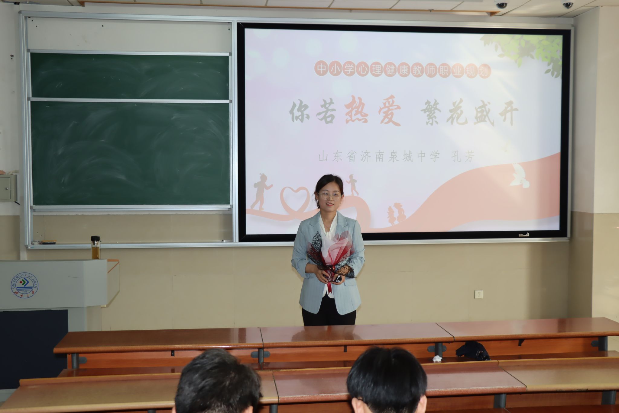 承办,济南市历下区兼职心理教研员,济南市心理学会理事、中学专职心理教师孔芳受邀作了题为“你若热爱,繁花盛开—中小学心理健康教师职业规划”讲座。讲座由教心开元娱乐城