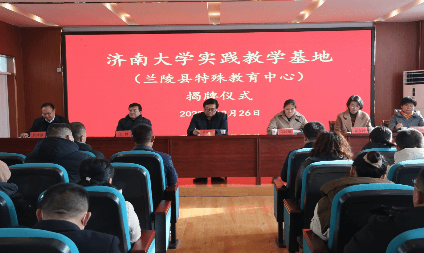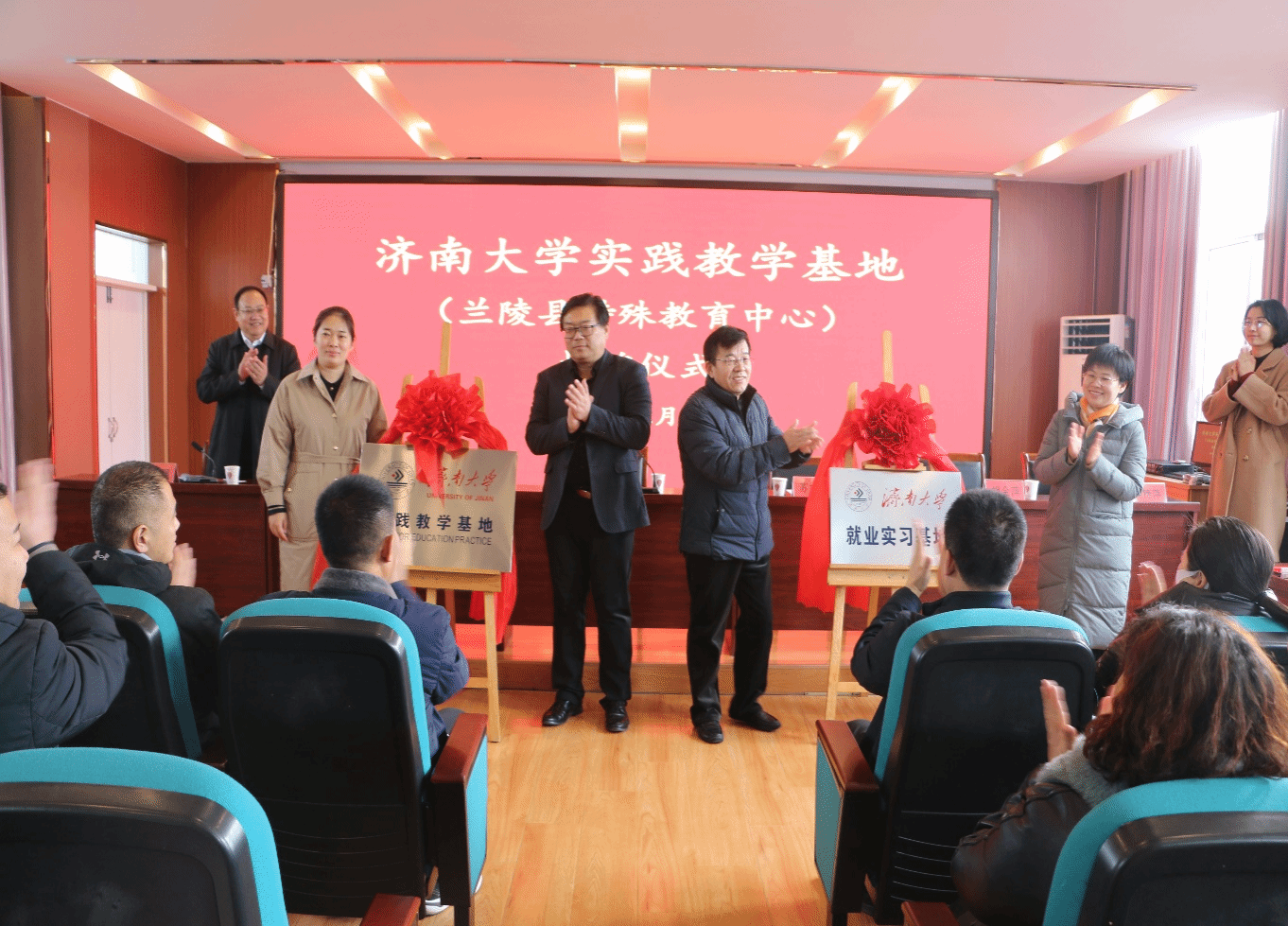 与兰陵县特殊教育中心举行实践教学基地和就业实习基地签约揭牌仪式。兰陵县委常委、宣传部部长、统战部部长、教育工委书记、县政协党组副书记苏妮娜,兰陵县教体局教育事业发展服务中心主任羿艳萍,兰陵县特殊教育中心主任曹计广,开元娱乐城