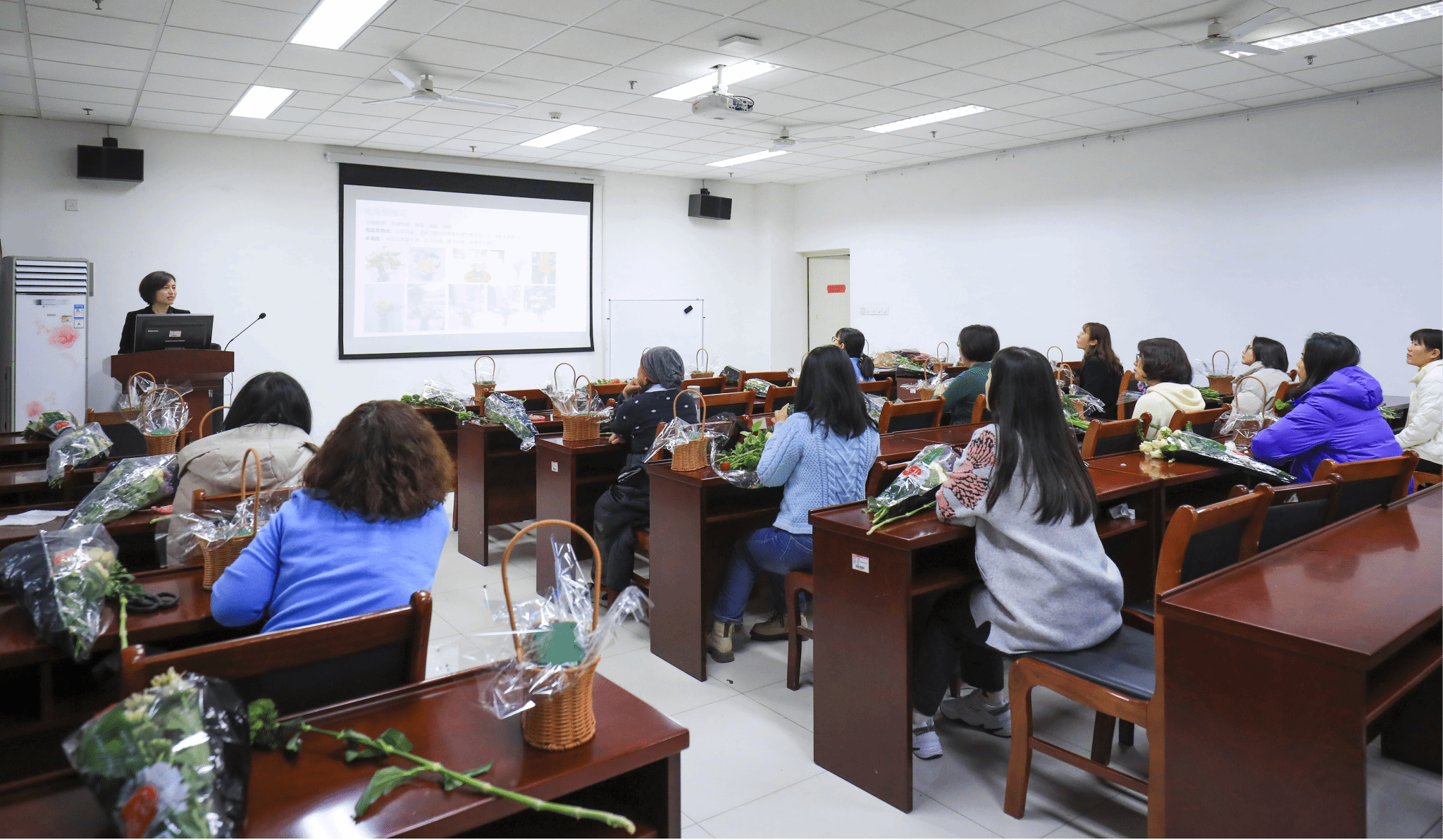 邀请了济南市花艺设计师郝俊美为大家讲解了插花艺术的基本知识,并现场指导大家制作插花作品,参与活动的老师了解插花技巧的同时放松了心灵,在紧张的工作中领会了另一种修炼心灵的方式。