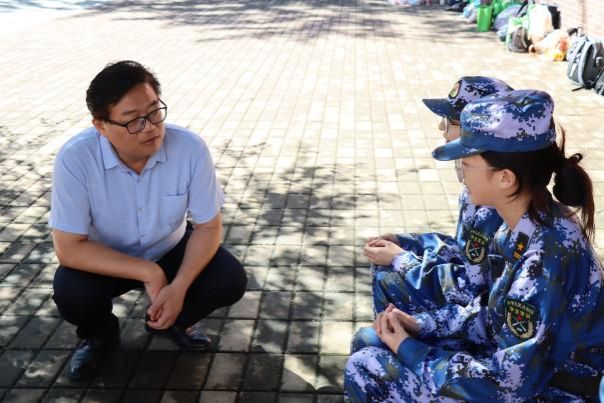 季竹君书记表示,军训是新生入学后的第一课,全体新生要克服困难,充分发挥吃苦耐劳、踏实肯干的精神,培养队伍的凝聚力、向心力,既要坚持高标准、严要求,又要张弛有度、安全施训,确保高质量地完成军训任务。在训练间隙,季竹君主动与学生们亲切沟通,详细询问了军训见习生的身体状况,并鼓励同学们要发扬不怕苦、不怕累的精神,在军训的过程中养成良好的行为习惯,磨砺意志、强健体魄。