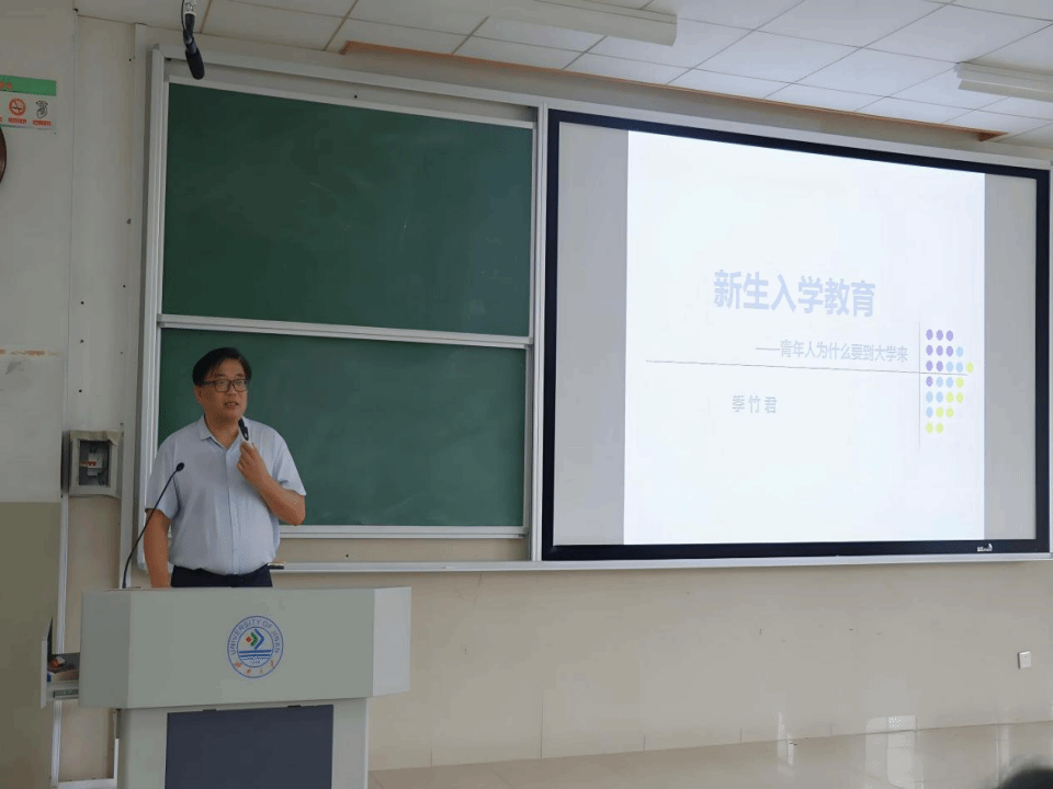 季竹君书记首先向2024级新生的到来表示热烈欢迎和衷心祝贺,向同学们介绍了大学是什么,大学生的使命与担当,以及大学里要做什么。在本次入学教育中他对大家提出三点希望和要求,一是要勤勉求知,积极实践,提升综合素质,勇担时代使命;二是要树立目标,脚踏实地,做好个人发展和学业规划,找到人生方向,“立大志,明大德,成大才,担大任”;三是要树立崇高理想,涵养家国情怀,努力掌握知识本领,把专业理想与国家发展需要紧密联系,争做担当民族复兴重任的时代新人。最后,他寄语新生要心怀梦想,以智启慧,愿大家都能成为心中有梦、眼中有光、脚下有路的卓越人才。