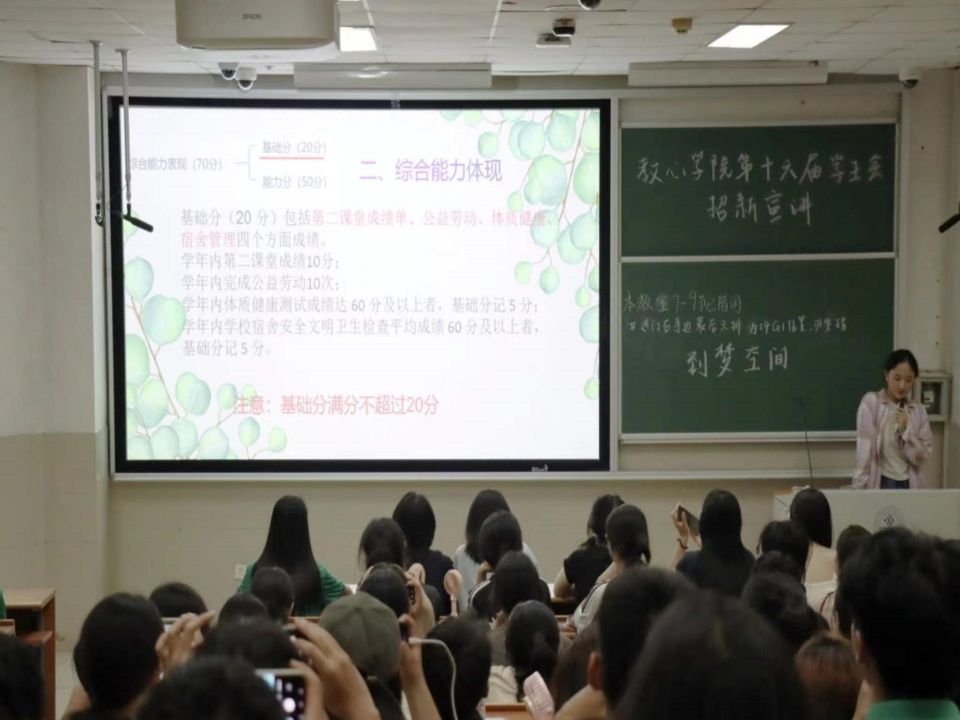 宣讲会上,各部门依次亮相,活力满满。团学部引领思想,激情四射;科创部科技领航,严谨务实;宣传部才思敏捷,创意无穷;心理与生涯发展部诚挚用心,精心规划;志愿服务部奉献爱心,传递温暖;文体部活力四射,多姿多彩;学风建设中心严谨笃学,奋勇向前,鼓励同学们不断攀登知识高峰。现场气氛十分活跃,同学们积极发问,踊跃报名,纷纷表示想要参与其中。
