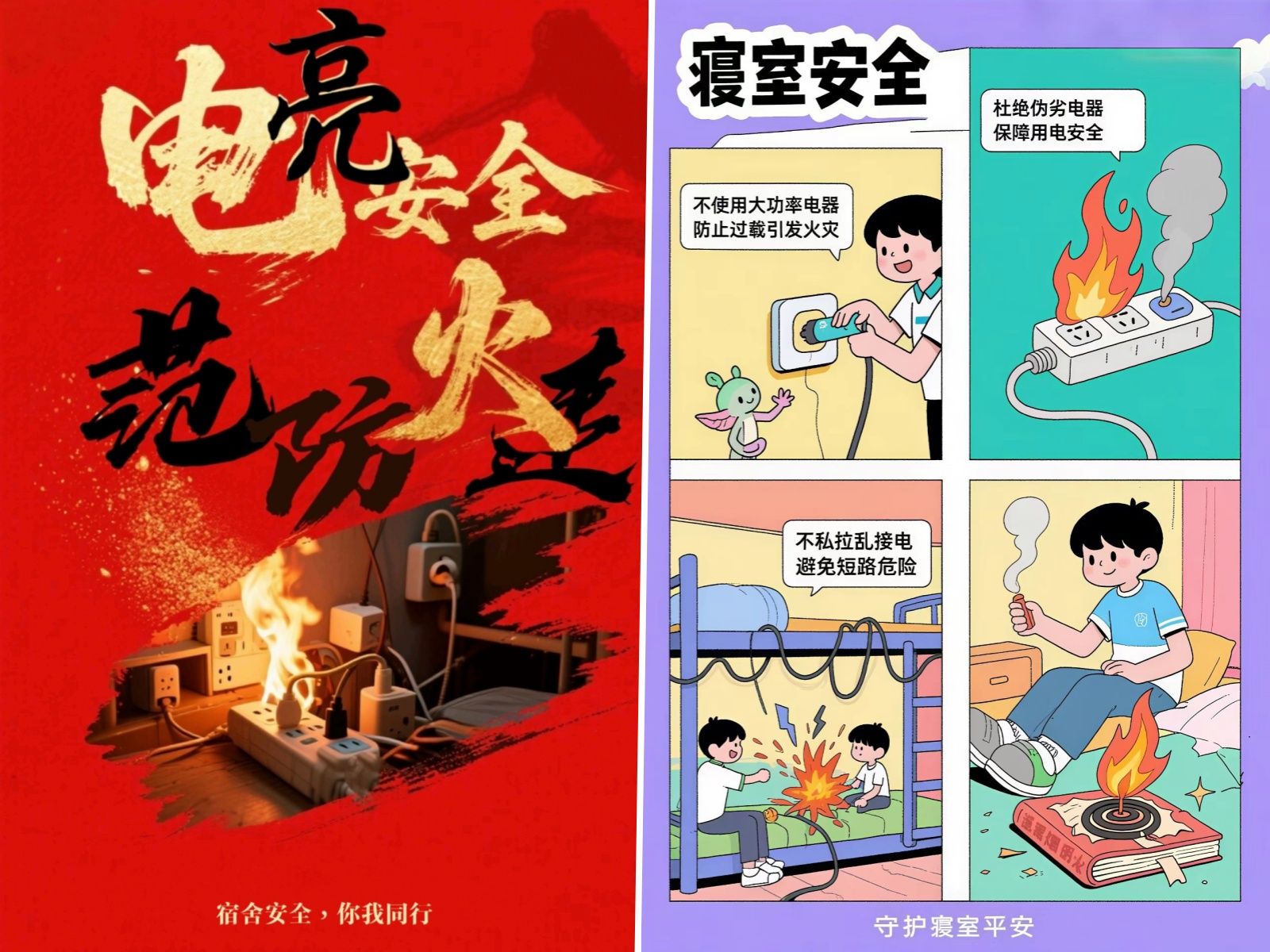 于线上举办了“电”亮安全,“火”速防范”宿舍安全海报设计大赛。