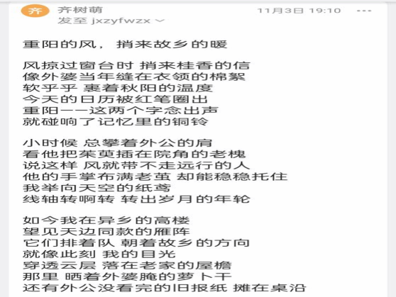 为了引导同学们主动挖掘中华优秀传统文化的精神养分,在传统节日中涵养浓厚家国情怀,10月29日至11月8日,教育与心理科学开元娱乐城 志愿服务部于线上举办了“诗话重阳,尺素传情”诗词征集活动。
