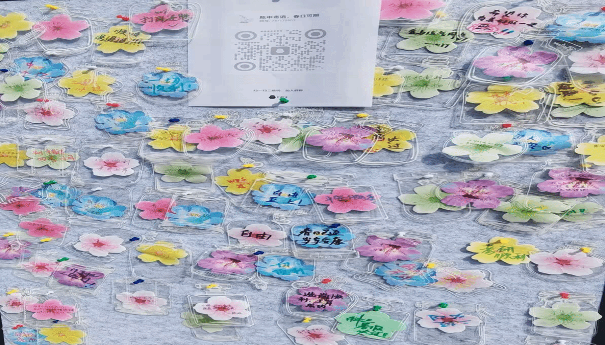于第八食堂广场举办了“瓶中寄语,春日可期”主题活动,为校园增添了一抹温暖而明亮的色彩。
