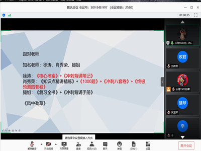 学生会宿管部、学习部、纪检部、团学部召开第三届心理考研线上交流会。参加会议的有乔福强老师,16级考研结束的学长学姐以及其他参加考研的同学。