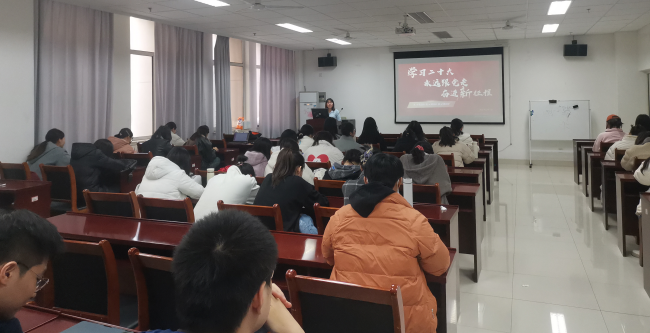 各年级辅导员老师走上讲台,分年级开展示范宣讲,带领同学们领会党的二十大报告精神,全方位解读党的二十大报告内涵,引领学生牢记习近平总书记对青年的重要嘱托;同时带领同学们学习了党的二十大代表的光辉事迹,领略了先进模范人物的风采。活动紧扣共青团的根本任务、政治责任和工作主线,着力推动党的二十大精神在青年学生中入耳、入脑、入心。
