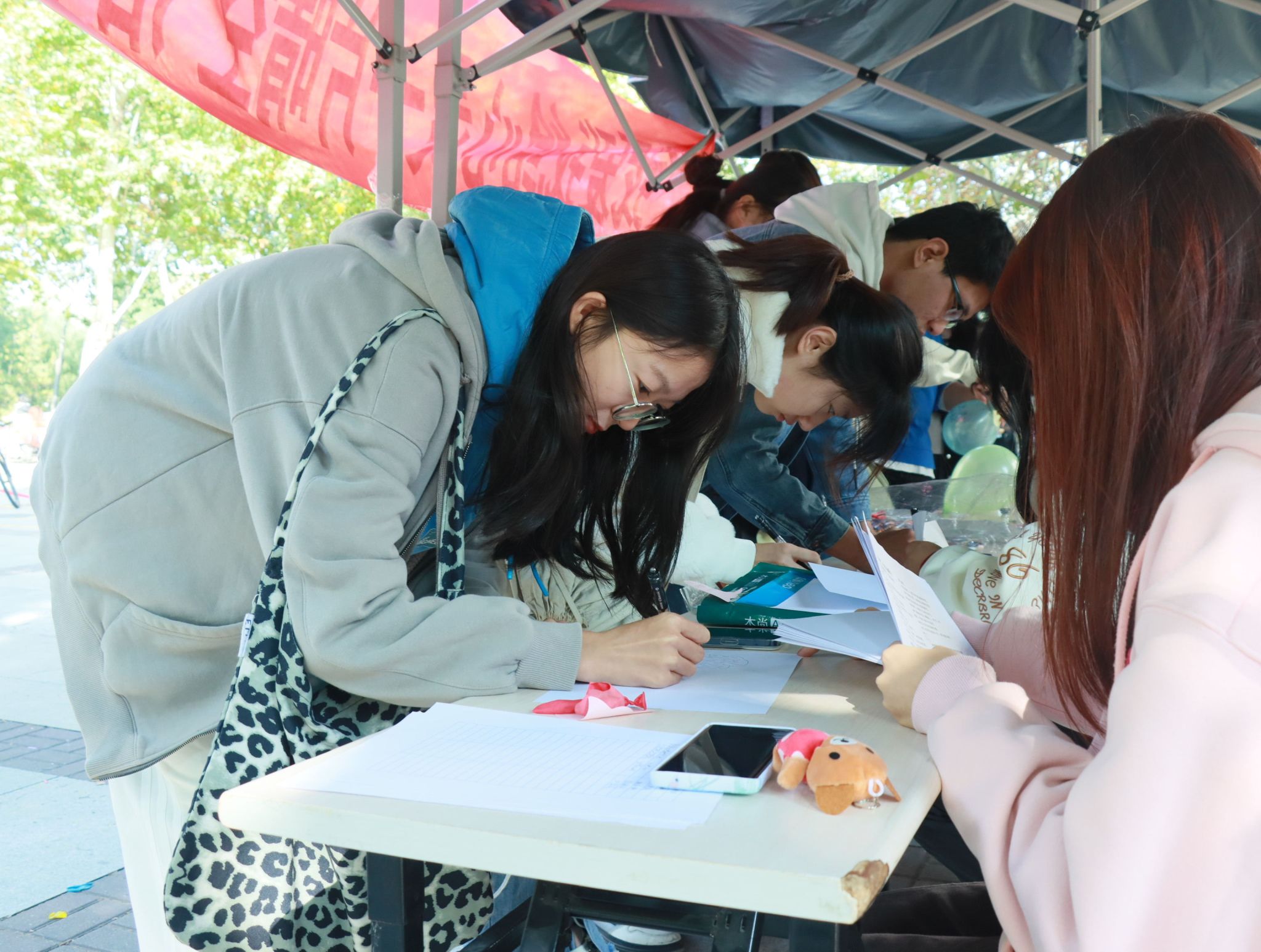 于第八食堂活动广场举办“我爱我,给心灵一片晴空”主题活动。