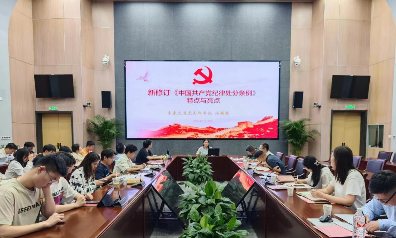 为深入学习贯彻习近平总书记关于开展党纪学习教育的重要讲话和重要指示精神,持续推动党纪学习教育走深走实,6月5日下午,未来交通党支部书记汤颖颖围绕新修订《中国共产党纪律处分条例》的特点与亮点为支部全体党员作党纪学习教育专题党课。
