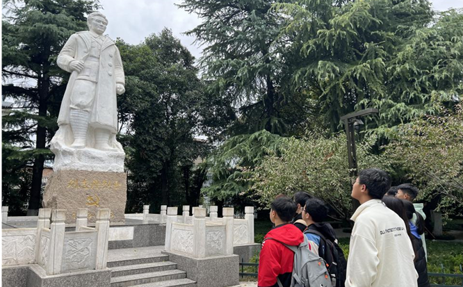 第一站首先来到西安市革命公园,院学生会部门负责人杜奕琳向大家详细介绍在革命亭、忠烈祠等地点发生的历史故事。通过瞻仰革命烈士雕塑纪念碑,同学们深切体会到革命先烈们的坚定信念和无私奉献精神,缅怀了为中国革命事业献身的先烈们,也将历史红色血脉植入基因。