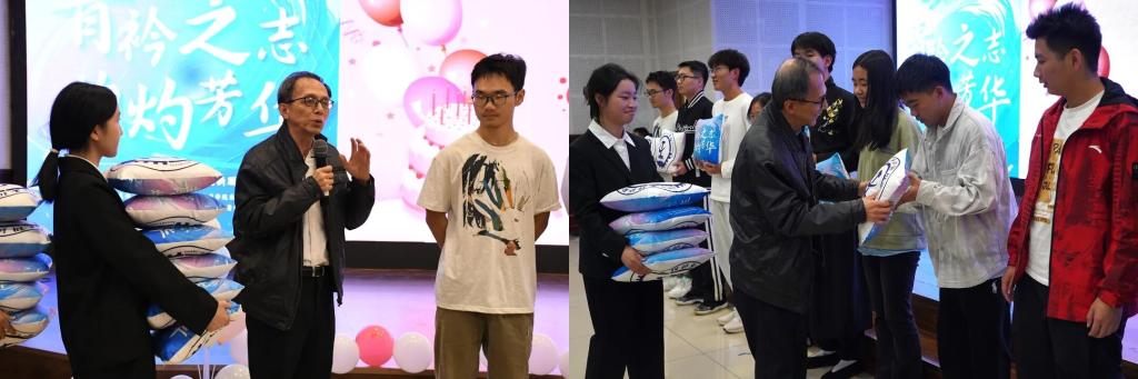 庆生环节暖意融融。现场邀请11月份过生日的本科新生代表、研究生新生代表登台,Fwa Tien Fang亲自为他们送上生日祝福与定制礼物,全场师生齐唱生日歌,将团圆与关怀的氛围推向高潮,齐声高呼的“未来交通,青春加油”不仅是口号,更是全体未来交通人的坚定信念。