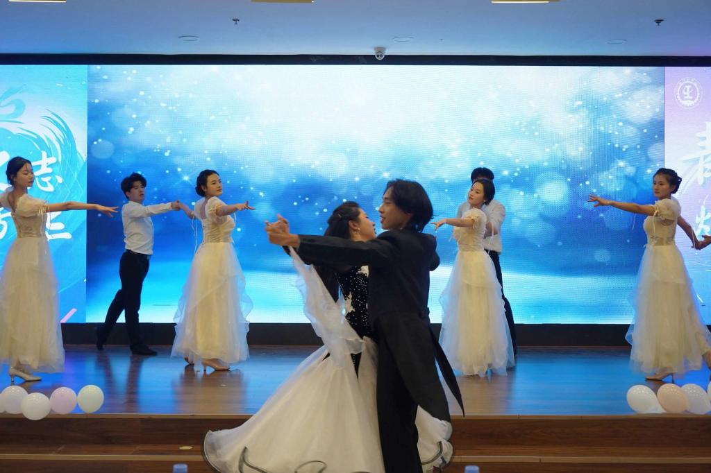 长安大学健身交谊舞协会带来的《翩跹》以优雅灵动的舞姿征服了全场观众。舞者们配合默契,灵动舞步在灯光下流转翩跹,完美诠释了交谊舞的优雅韵味与青春活力。